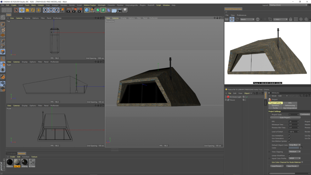 Tiny House 3D model with Cinema4D Setup and Redshift